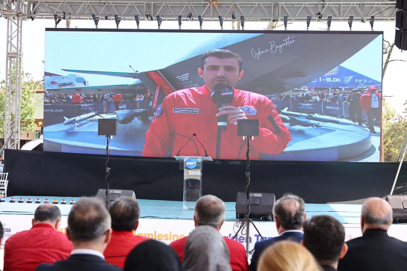 Emeği geçen herkese şahsı ve ailesi adına teşekkür eden Bayraktar, “Sene 1978, Haluk Bayraktar doğmamıştı. Selçuk Bayraktar dünyada yoktu. Özdemir Bayraktar Japonya’dayken Haluk Bayraktar Türkiye’de doğdu. Oradan bir model uçak getirdi. Günlerce uğraştı. Ek pistonlu bir motoru vardı. Biraz uzaktan kumandalı uçak… Günlerce uğraştı, biraz uçuyordu ve hemen düşüyordu. Sonra başka ülkeden aldı geldi ve yine defalarca uçurmaya çalışıyordu.” diye konuştu.